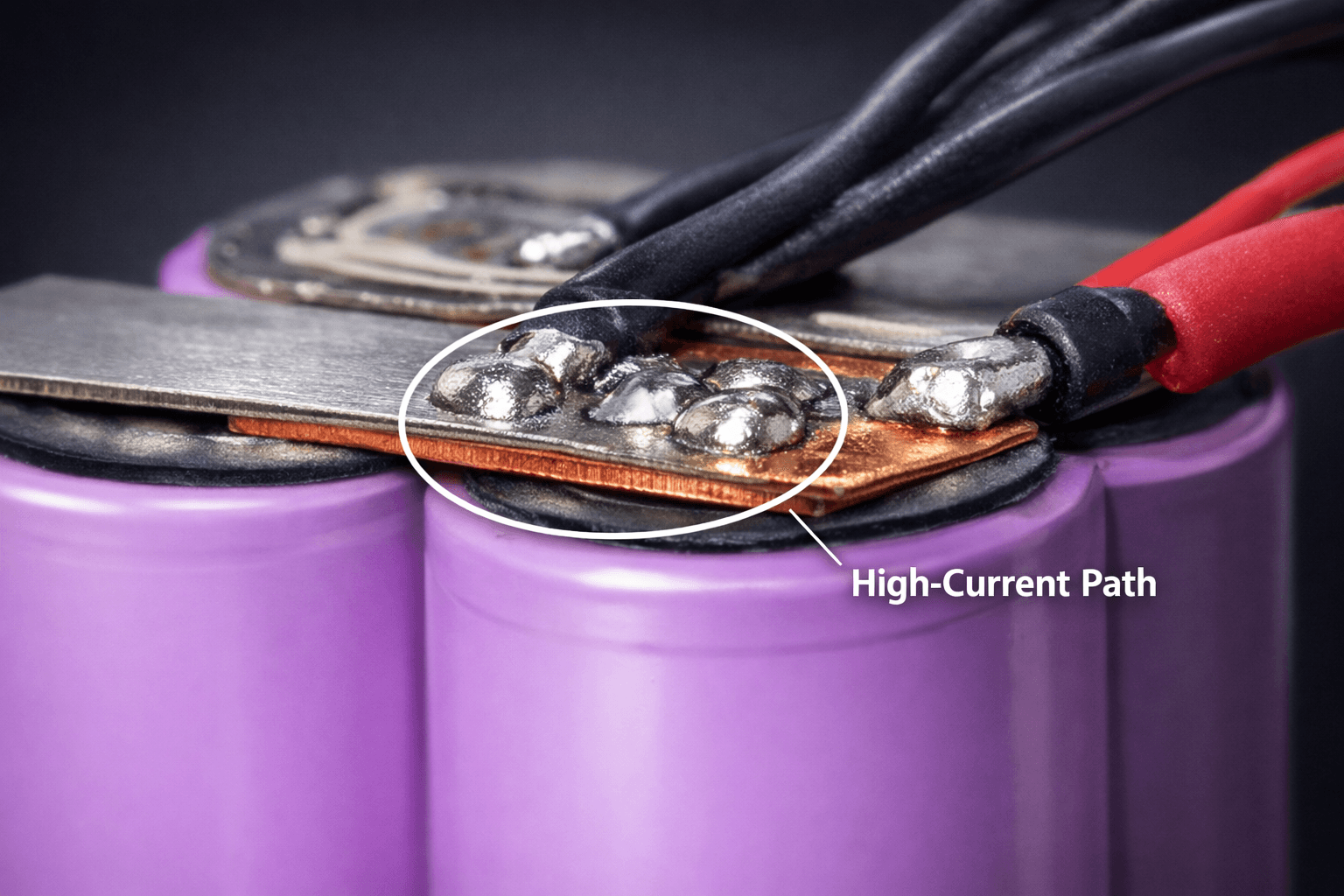 Utilizes a unique welding process combining 0.10mm nickel-plated steel strips with 0.20mm T2 copper strips. This significantly reduces internal resistance and heat generation, supporting sustained high-current discharge without voltage sag.