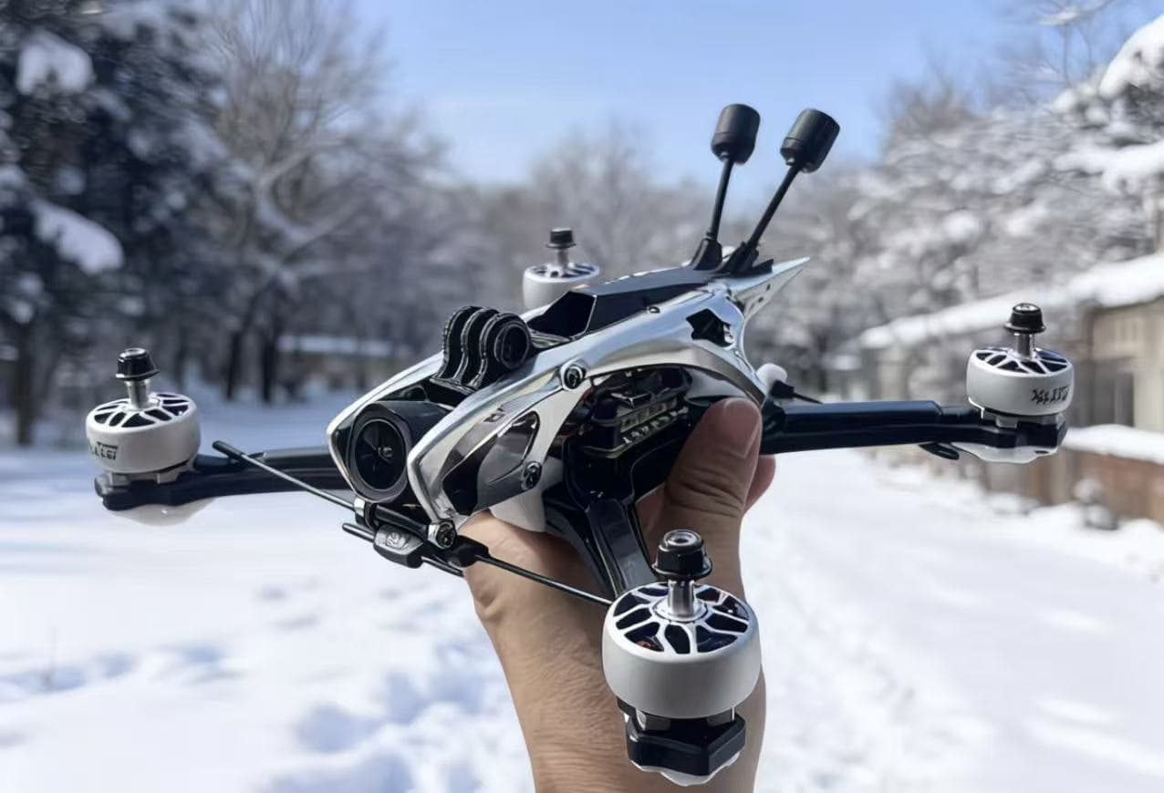 The lightweight frame is engineered with high structural strength, providing excellent crash resistance while maintaining agile flight characteristics.